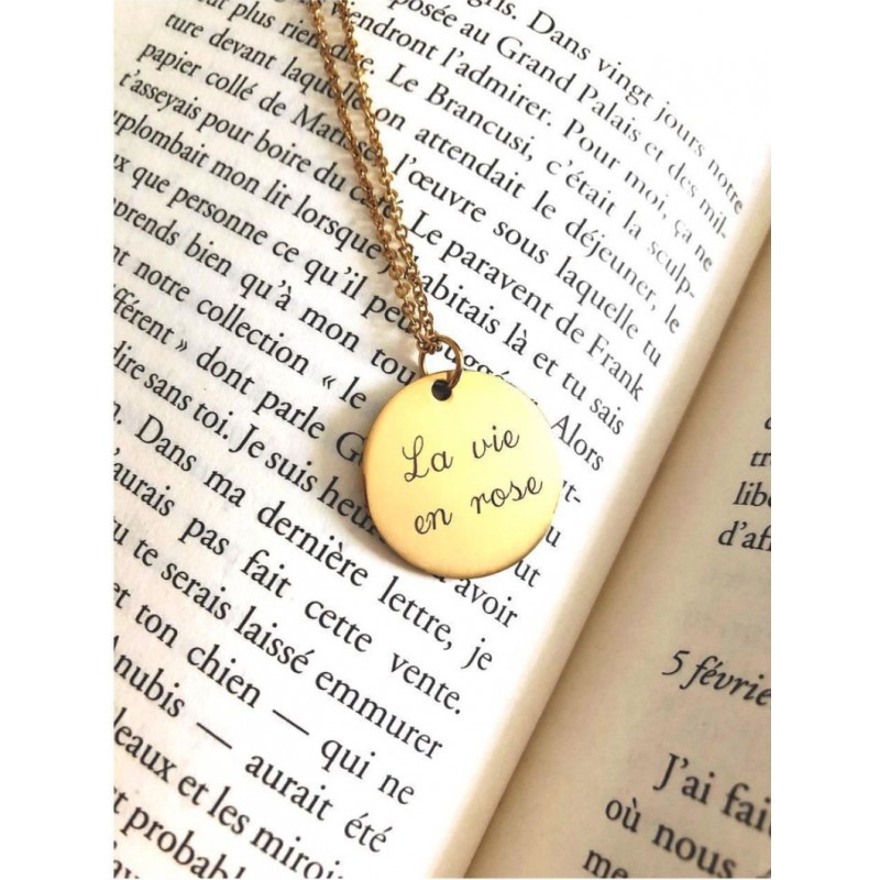 Offrir un bijou gravé avec un message optimiste: un collier avec médaille gravée "La Vie en Rose"